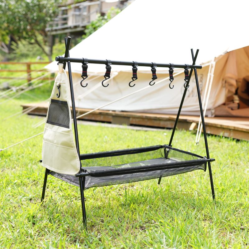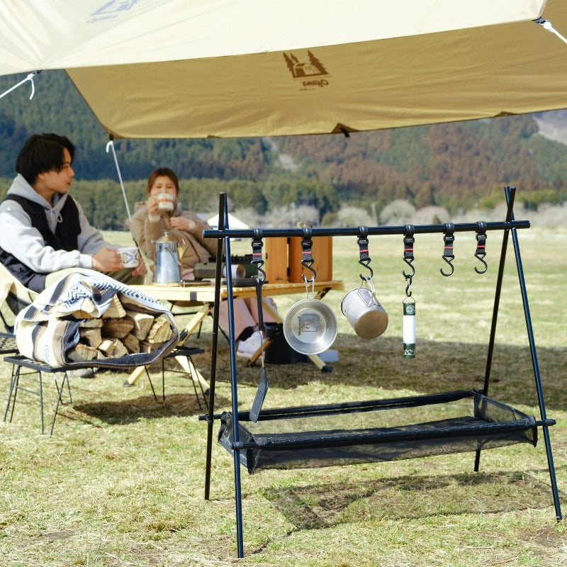 気軽にアウトドアシーンに持って行ってもらえるように、軽く、コンパクトな作りになっています。。ポールの素材は高強度アルミニウム合金で軽いだけでなく、丈夫で安定性が抜群。コンパクトになる本体の組み立ては、ショックコードに従ってポールをはめ込んでいくだけでカンタン。