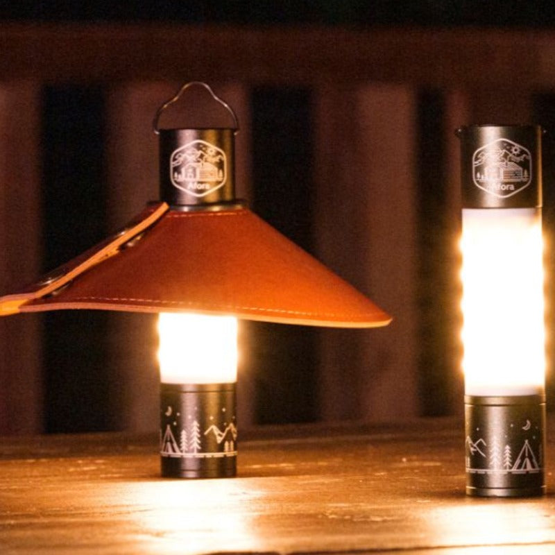 レザー素材で重厚感もあるAforaのランタンシェードは無機質な外見のものが多いLEDランタンにピッタリ。ランタンシェードを付けるだけでおしゃれアイテムに大変身です。キャンプや自宅のインテリアとしても活躍します。